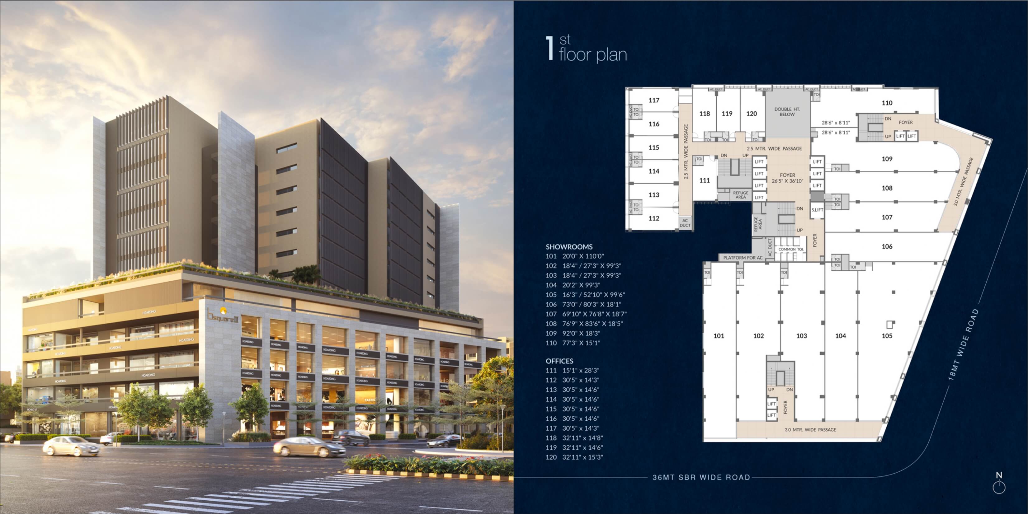 Think Act Big & Bigger We understand the needs of niche Showrooms, Retailers and Corporates. That's why the Binori Group come with a unique concept of the Commercial Complex "bsquare Ill". A Large-sized project will suits your needs with all required amenities. We offer space for Specialty Stores, Shops, GYM, Clinics, Restaurant & Banquet Hall, Art Gallery, Boutique, Banks, Corporate Offices etc.